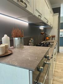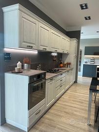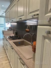 Cucina Scavolini modello Madeleine Bianco gesso con top laminato unicolor completa come foto cm 390. elettrodomestici compresi: Frigo, lavello, piano cottura gas e cappa. Escluso Forno. Cucina Nuova visibile montata in Expo (store Scavolini Alba) Il prezzo si intende smontata imballata Escluso Trasporto e Montaggio.