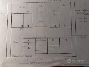 Vendita cucina completa di elettrodomestici :Figorifero indesit classe A - Lavello Franke cm 116x50 con miscelatore, piano cottura Whirpool akp235, piano lavoro laminato profilato alluminio , lavastoviglie Indesit A/A/A.