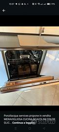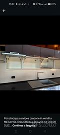 meravigliosa cucina Scavolini colore glicine. Misure - dal frigo all angolo 315 - altezza 245 - fuochi 70x50 - dall angolo alla penisola 4 MT - lavandino 97x50 - penisola 136,5x60 - tavolo 130x80 altezza 80 - seduta sgabelli 35 Ritiro e spedizione a carico dell acquirente.