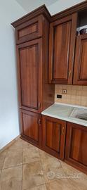 cucina Scavolini in noce chiaro, 4.5 metri, in discrete condizioni, elettrodomestici funzionanti ma usurati.