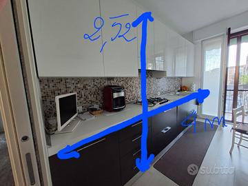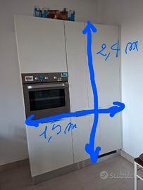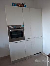 Vendesi causa cambio, cucina Scavolini bianca laccata lucida e wengè, elettrodomestici Elettrolux Rex perfettamente funzionanti, fuochi, lavandino e rubinetto in fragranite Franke. Carrello estraibile portavivande Lunghezza 4 m + parete da 1,5 m Smontaggio e trasporto a carico dell'acquirente