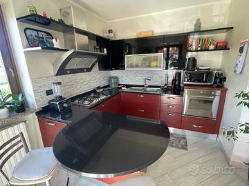 Vendo cucina Scavolini modello Rainbow in ottime condizioni, completa di elettrodomestici e penisola. ✔️ Dimensioni: lato 270 cm + lato 220 cm ✔️ Penisola ampia con piano snack arrotondato completa di n. 2 sgabelli ✔️ Top in composito nero, resistente e facile da pulire ✔️ Ante in buono stato, senza difetti evidenti ✔️ Completa di forno (smeg), piano cottura 5 fuochi, cappa (airone) e lavastoviglie (bosch) Cucina moderna e funzionale, ideale per chi cerca una soluzione completa pronta all’uso. Smontaggio e trasporto a carico dell’acquirente. Disponbilie tra il 15/06 e il 30/06 (non oltre) Pagamento: 50% caparra e 50% al ritiro