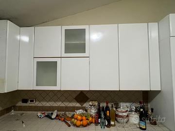 Cucina ad angolo 3,46 x 3,16 nella prima parte sportelli altezza 1.06 lavastoviglie marca Whirlpool doppia vaschetta piano cottura da 90 marca Hotpoint cappa a vista marca Faber forno da 90 (usurato ma funzionante) frigorifero (colonna frigo leggermente rotta durante lo smontaggio) top in grès porcellanato e faretti inseriti in alto sopra i sportelli compreso tavolo e n 6 sedie