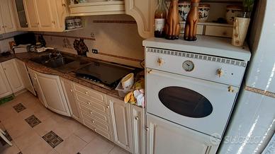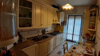 Cucina Scavolini completa di: lavatrice incassata, frigo e congelatore incassato, forno a gas, top di marmo vero, due lavabi e piano cottura a 5 fuochi