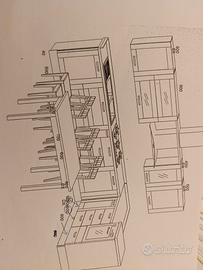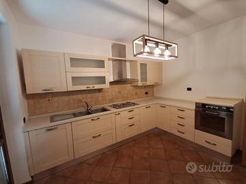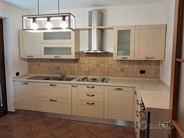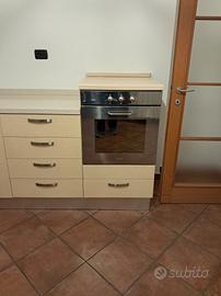 Cucina Scavolini legno impiallacciato. Completa di lavastoviglie, forno, cappa, piano cottura Renzo Piano. Top in pietra naturale.