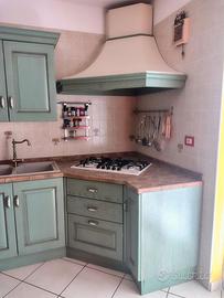 Cucina Scavolini, modello belvedere, colore verde Cappa colore panna Misure : colonna forno larghezza 60 Lunghezza lato lavandino 256 Lato fuochi 130