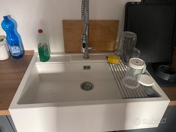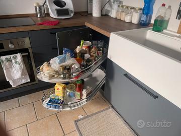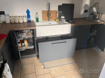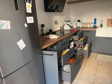 Vendo chcina Scavolini con lavastoviglie. Le misure sono le seguenti: Lato cappa 217,5 cm Lato lavello 300,5 cm Profondità 57 cm Spessore piano 4 cm Lavello 85cm largo lungo 60cm profondo 18cm Pensili lunghezza 150cm Completa di lavastoviglie, la cucina è gia smontata e pronta per essere venduta.