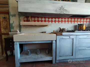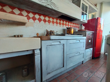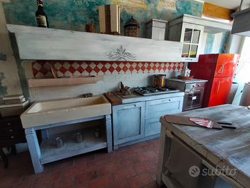 Cucina shabby in legno massiccio . Interamente su misura con possibilità di personalizzare legni, colori e finiture.