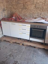 cucina lineare m.2.46 ottimo stato appena smontata e riposta in garage tenuta coperta. composta da lavello due vasche con rubinetto due vie e completo di scarico, piano cottura e forno usato pochissimo ottimo stato, pensile scolapiatti, cappa aspirante e due pensili ad un anta. trasporto a carico dell'acquirente o da concordare.