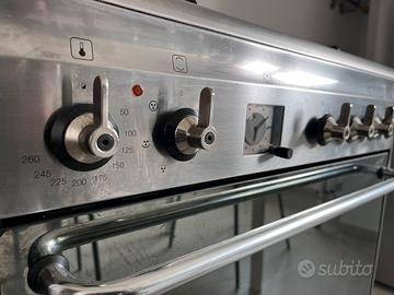 Vendo cucina SMEG semiprofessionale, usata ma in ottimo stato, con 4 fuochi a gas e coprifuochi in ghisa. Forno elettrico che raggiunge oltre i 260 gradi con diverse funzionalità. Vano sottostante con sportello per riporre teglie. Vetro copri piano fuochi integro e originale. Dimensioni larghezza 60 lungherzza 59 Prezzo nuovo piu di 600 euro. Vendo a 200 euro. Scrivetemi per info se interessati