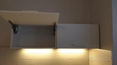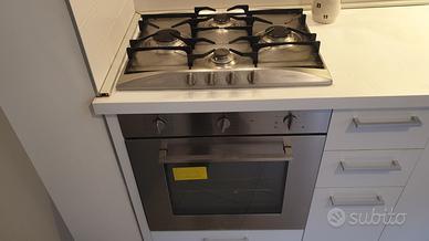 Cucina SMEG compatta e moderna, caratterizzata da mobili lineari bianchi. La cucina è dotata di un piano cottura inox a gas 4 fuochi , un forno inox incassato termoventilato a più funzioni e un lavello in acciaio inox ad una vasca, con una cappa aspirante a camino coordinata. Mobilio 2 scomparti sotto lavello, 3 cassetti sotto lavello, 2 pensili. Misure: Lunghezza cucina 214 cm Altezza piano cucina 90 cm Profondità cucina 61 Larg pensile 60 cm Profondità pensile 35 cm Altezza pensile 35 cm Larghezza cappa 60 cm Profondità cappa 45 cm La cucina è in buono stato usata poco ed è disponibile immediatamente. Lo smontaggio e le spese di trasporto sono a carico dell'acquirente. Non si accettano permute.