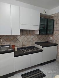 cucina snaidero bianca con vetrine fume, piano cottura hotpoint ariston e lavello in acciaio antigraffio la cucina è completa di tavolo retrangolare ribaltabile (diventa quadrato il doppio del piano) e 8 sedie