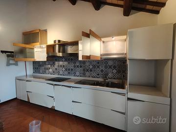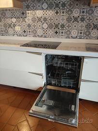 Regalo cucina marca Snaidero, compresi il ripiano in quarzite, la cappa (Falmec), il lavello in acciaio (Franke), la lavastoviglie (AeG) e il piano cottura induzione (Bosch in ottime condizioni). Lunghezza totale cucina 424 cm, altezza della colonna 200 cm.