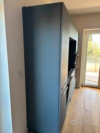 Vendo cucina Space 81 Trend in laminato Fenix, blu navy opaco scuro, dal design elegante e contemporaneo, in ottime condizioni. La composizione comprende colonne, basi, pensili e isola/penisola con piano cottura. Inclusi nel prezzo anche due sgabelli per l’isola. Elettrodomestici Hotpoint-Ariston inclusi: - Piano cottura a induzione - Frigorifero con freezer - Lavastoviglie - Forno elettrico da incasso - Forno a microonde da incasso Misure: Parete lavandino: - Larghezza: 255 cm - Altezza: 218 cm - Profondità: 60 cm Lato piano cottura / penisola: - Larghezza lato corto: 143 cm - Larghezza lato lungo: 167 cm - Altezza piano: 90 cm Smontaggio, rimontaggio e trasporto a carico dell’acquirente. Disponibile per visione su appuntamento. Contattami per informazioni.