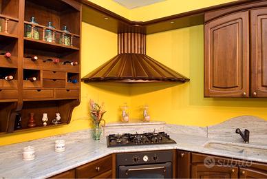 Bellissima cucina in stile classico realizzata in massello di noce nazionale è impreziosita da una cappa lavorata completamente a mano che da un tocco di personalità.