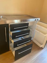Il piano completamente in acciaio lo inserisce tra i modelli più costosi della gamma. Il prezzo oscilla tra 2.619,00 €. 3.199,00 € in base alle composizioni e agli elettrodomestici.