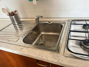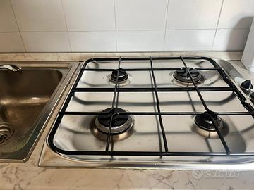 Cucina con piano cottura a gas, forno elettrico e tavolo