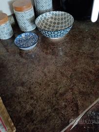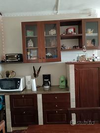 Con rammarico vendo, causa traferimento, bellissima cucina in stile muratura con piastrelle in travertino e piano in granito (vedi foto), tenuta molto bene. Lunghezza 5.20 mt, può essere montata sia lineare che ad angolo (come in foto) o anche accorciata non usando tutti i top. La richiesta è di € 300 x via degli inevitabili segni di usura. Consegno già smontata.