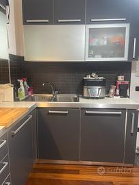 Causa trasloco vendo cucina angolare marca Stosa color grigio opaco compresi fuochi in ghisa e doppio lavello e eventualmente lavastoviglie da 60. No forno no frigo. Usata ma in buone condizioni. Misure 2.85 (lato fuochi compresa colonna forno) x 1,78 (lato lavello). Taglio della colonna angolo lavello 18x44 cm. €500 trattabili. Disponibile da fine aprile (entro il 29 va ritirata), trasporto e smontaggio a carico dell’acquirente.