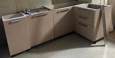 Vendo Cucina Stosa composta da: base da 30 cm, base da 60 cm con lavastoviglie, base ancolare sottolavello e lavello elleci, base a cassetti da 60 cm Pesile da 90cm con cappa ingrata, pensile da 60 cm, pesile angolare 60X60cm, e pensile con vetrina da 60 cm. Altezza pesili 90cm La cucina è completa di Lavastoviglie,lavello in fragranite da 100cm e zoccolino copripiedini di colore inox. La cucina non dispone di top. A disposizione per qualsiasi informazione