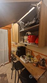 -Piano snack (lunghezza 120 cm) con due sgabbelli e ulteriori due pensili (60 x 60 e profondità 34 cm)