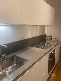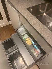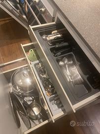 Cucina acquistata un anno e mezzo fa, usata pochissimo, come nuova, in vendita per cambio casa. Dotata di piano di lavoro in quarzo, piano cottura Samsung, forno, lavastoviglie Whirlpool, lavello Foster sottotop, rubinetto con doccino, cappa, LED scolapiatti, cestoni.
