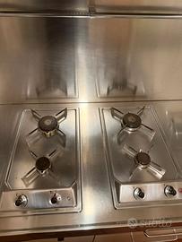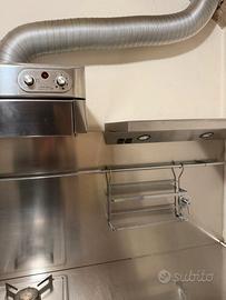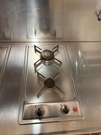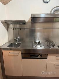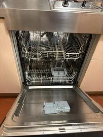 C'è anche un piccolo frigo ad incasso oltre a lavastoviglie, forno e ai fornelli a gas