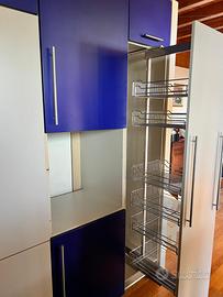Completa di colonna estraibile a tutta altezza per dispensa e colonna estraibile con carrello porta bottiglie e stoviglie.
