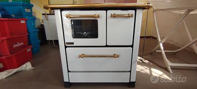 cucina stufa a legna Nordica con set di tubo bianco con curve e comignolo usata pochissimo