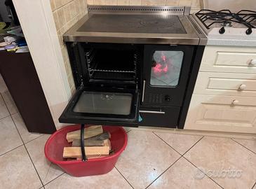 Stufa Rizzoli da 80+5 con fuoco a vista, uscita camino a sinistra + cappa Rizzoli.