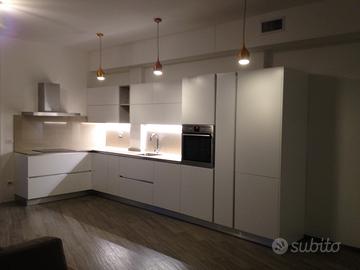Cucina binanca laccata con top in quarzo fatta su misura nel 2017, gli elettrodomestici, smontaggio e trasporto esclusi.