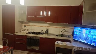 In vendita cucina componibile con piccolo angolo in buono stato, colore rosso bordeaux lucido.