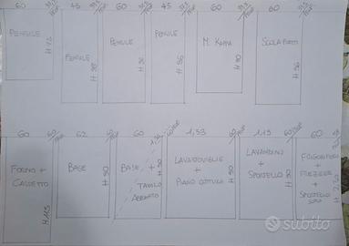 cucina su misura 332 cm x 180 con piano cottura 4 fuochi, frigorifero,forno whirpool,lavastoviglie beko