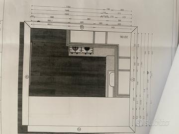 Cucina bianco perla, zoccolo e cornice superiore ,top laminato h.4 come da foto allegate .