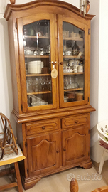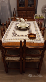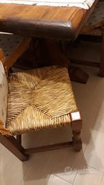 Cucina taverna completa in legno massello noce - con forno ventilato grande SMEG, piano cottura grande 5 fuochi, cappa, lavandino 2 lavabi, mobile frigo incasso, credenza alta con vetrine, tavolo grande con 10 sedie impagliate integre, consolle specchiera, mensole. Ottimo stato. Non incluso il frigo.