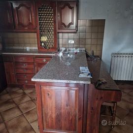 Cucina Tognoli in noce, completa di elettrodomestici, frigo, forno, lavastoviglie, piano cottura, tutto perfettamente funzionante. Top in marmo di granito, zona colazioni, sgabelli, tavolo, sedie e cassapanca angolare tutto in noce.
