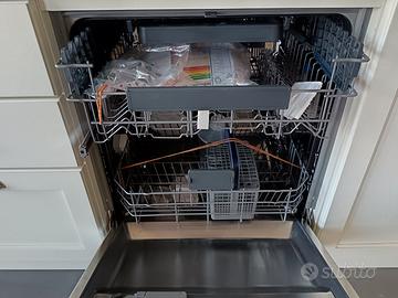 Vendesi cucina lineare di 3,70 metri di Crafa Arredamenti, modello classico con ante e cassetti. La cucina è nuova, mai utilizzata, installata in una casa non abitata. Caratteristiche Principali: * Lunghezza Totale: 3,70 metri (composizione lineare). * Top di Pregio: Interamente in marmo naturale. Anche il paraschizzi è in marmo. * Stile: Classico/Country Chic con maniglie a conchiglia satinate. Elettrodomestici Inclusi (Tutti Nuovi): * Forno: Franke. * Piano Cottura: Hotpoint (5 fuochi). * Lavello: Doppio lavello Franke in acciaio inox con miscelatore coordinato. * Cappa: Integrata nel pensile superiore con estetica classica. * Lavastoviglie: Beko (incassata a scomparsa, 13 coperti). Nella parte inferiore sono presenti ampi cassetti e vani con ante apribili. Sotto il lavandino sono già presenti due ripiani e un secchio integrato. La parte superiore si compone di pensili di varia tipologia: una credenza scolastoviglie in acciaio inox, pensile con lavagna al posto dei vetri e pensile vetrina con apertura verso l'alto. La cucina è di legno di color bianco, compreso il pannello posteriore a tutta altezza. La marca della cucina è Crafa arredamenti. Nella prima foto sono presenti le misure. Disponibile per maggiori informazioni e foto dettagliate.