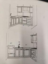 Causa ristrutturazione vendo cucina in blocco unico con forno e lavastoviglie incluso come da disegni.
