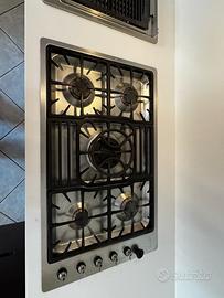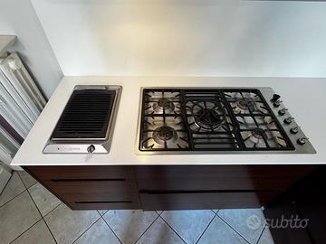 Vendesi cucina ad angolo completa di: - forno da incasso sottopiano - piano cottura (5 fornelli e barbecue elettrico da incasso) - frigo da incasso sottopiano Top in corian 366 cm x 212 cm