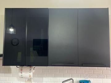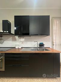 Vendo cucina Ikea comprata a Dicembre 2019. 2,64m L x 90 cm H - pensili 80cm H Nero opaco con top effetto legno scuro. Condizioni delle ante e mensole quasi ottimo. Top leggermente usurato. Prezzo 2000€ leggermente trattabili. Comprensivo di forno e piano ad induzione funzionanti, pensile fronte cucina con led da 140 x 40 cm Smontaggio e trasporto a carico dell’acquirente.