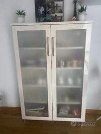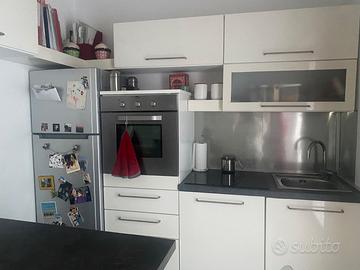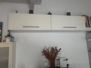 Cucina bianca lucida, parete 2,40 con frigorifero e forno. Vetrinetta con 5 ripiani e pensili laterali, come da foto. Smontaggio e trasporto a carico acquirente. 900 euro