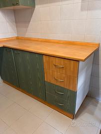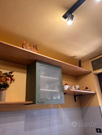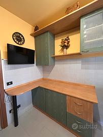 Vendo cucina compresi di lavandino, miscelatore, cappa e forno. NO PIANO COTTURA, NO FRIGO. Cucina componibile tenuta bene, difetto mostrato in foto. Composta da due pezzi uno lineare lungo 230 cm circa e la parte angolare lunga 165x60 cm circa. Compresi anche pensili, vetrine e mensole. Smontaggio e ritiro a carico dell’acquirente. CUCINA DISPONIBILE AL RITIRO PER I PRIMI DI GIUGNO