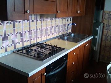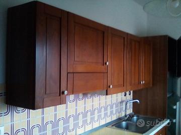 cucina lineare,top 225cm,frigorifero 60cm,tavolo legno bianco 70x100 allungabile,4 sedie