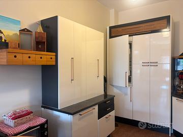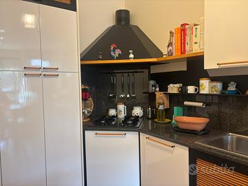 Cucina con tavoli e sgabelli. Usata - come nuova. Il piano cottura è stato usato pochissime volte, tenuta benissimo, come nuova.