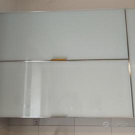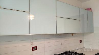 Cucina moderna pagata 11.000 con ante in laminato ante superiore in vetro opaco, rallentatori nelle ante superiori che si aprono dal basso verso l'alto e nei cassettoni, frigorifero ad incasso e forno