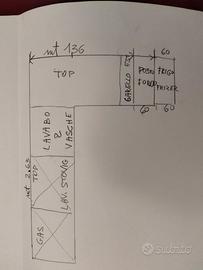 Vendo per ristrutturazione cucina anno 2003 completa di doppio lavabo in acciaio, lavastoviglie Neff (anno 2009), frigorifero e freezer Rex, piano cottura in acciaio 4 fuochi e cappa. Le misure sono indicate in foto. Visionabile, già smontata.