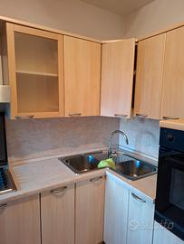 mobile: cucina ad angolo con gas a 5 fuochi più piastra, forno a incastro e frigo con congelatore a 3 cassetti .