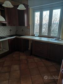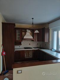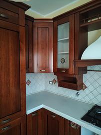 Cucina in legno usata in buone condizioni generali, sono presenti il piano cottura e il frigo. smontaggio e trasporto a carico dell'acquirente.