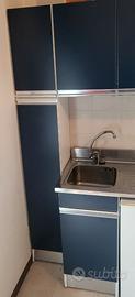 Cucina con piano in acciaio inox e colonna a sinistra. Misure cm. 120 + 30(colonna) x 60 H. 200