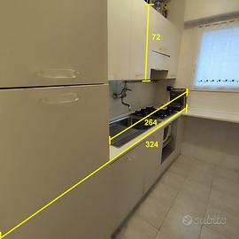 cucina della veneta cucine, mt 3,24 completa di frigo, lavastoviglie lavandino e piano cottura con cappa aspirante. Cucina in buone condizioni, il tappo della cappa scollato come da foto. euro 150 smontaggio e trasporto a cura dell' acquirente disponibile dopo il 15 aprile.